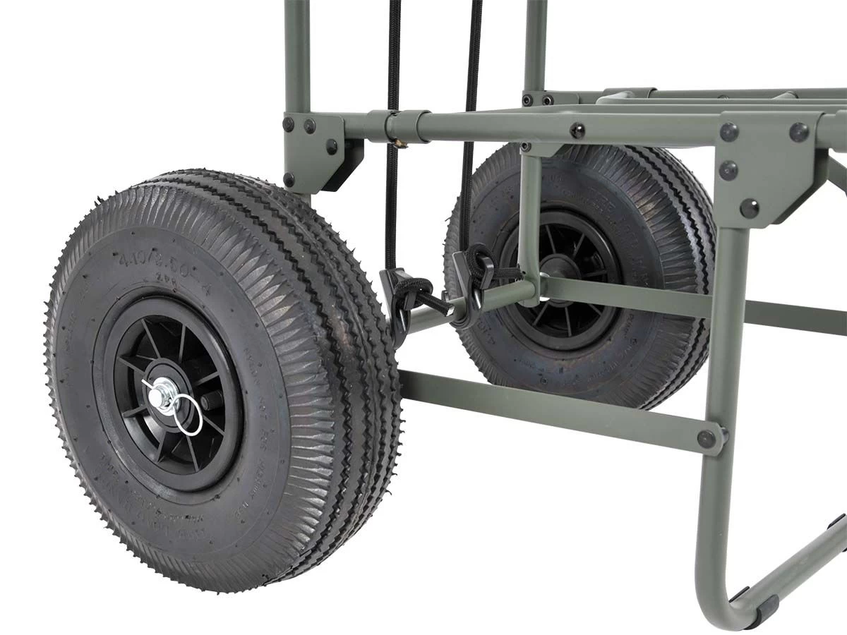 De luchtbanden zorgen voor maximale grip en comfort tijdens het rijden op oneffen grond. De zijspan zorgt voor een breed laadvermogen. Aan de bovenkant zit een foam handvat. Kortom de perfecte trolley in zijn prijsklasse!