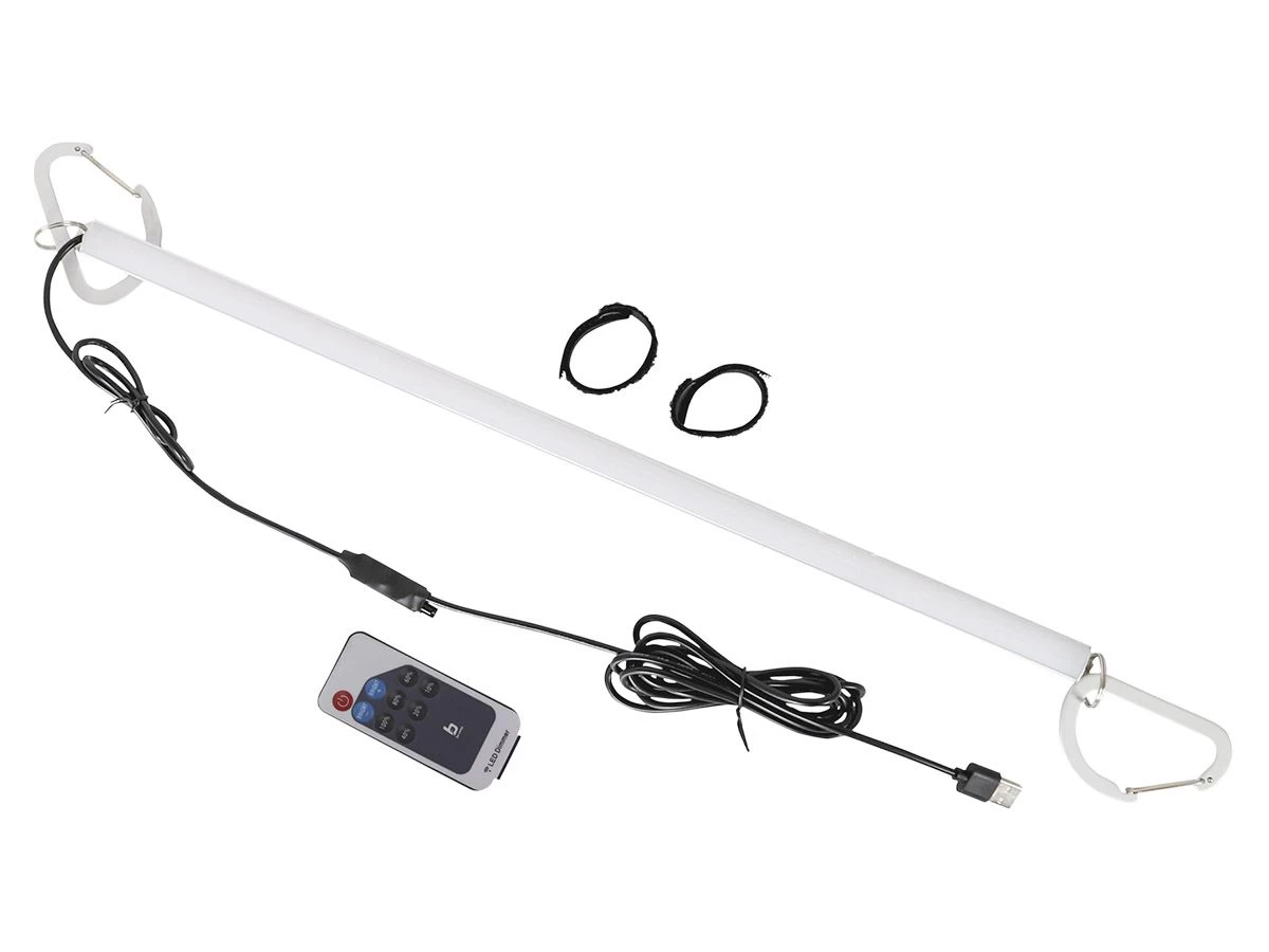 Wil jij praktische verlichting in je (voor)tent die tegelijk ook erg sfeervol werkt? Dan is de Slim Tube Led strip van Bo-Camp een goede keuze! De lamp is voorzien van een afstandsbediening. Hiermee kan de lamp aan en uitgezet worden, maar ook worden gedimd. De LED-buis wordt geleverd met twee ophanghaken, twee klittenbandjes en een aansluitsnoer met USB-aansluiting.