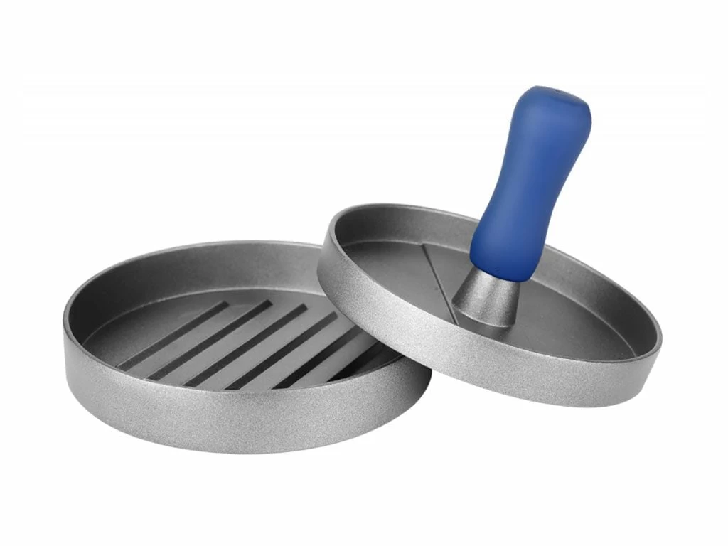 De pers is gemaakt van RVS en is voorzien van een non-stick coating. Hij heeft een soft-grip handgreep en een diameter van 11 cm.