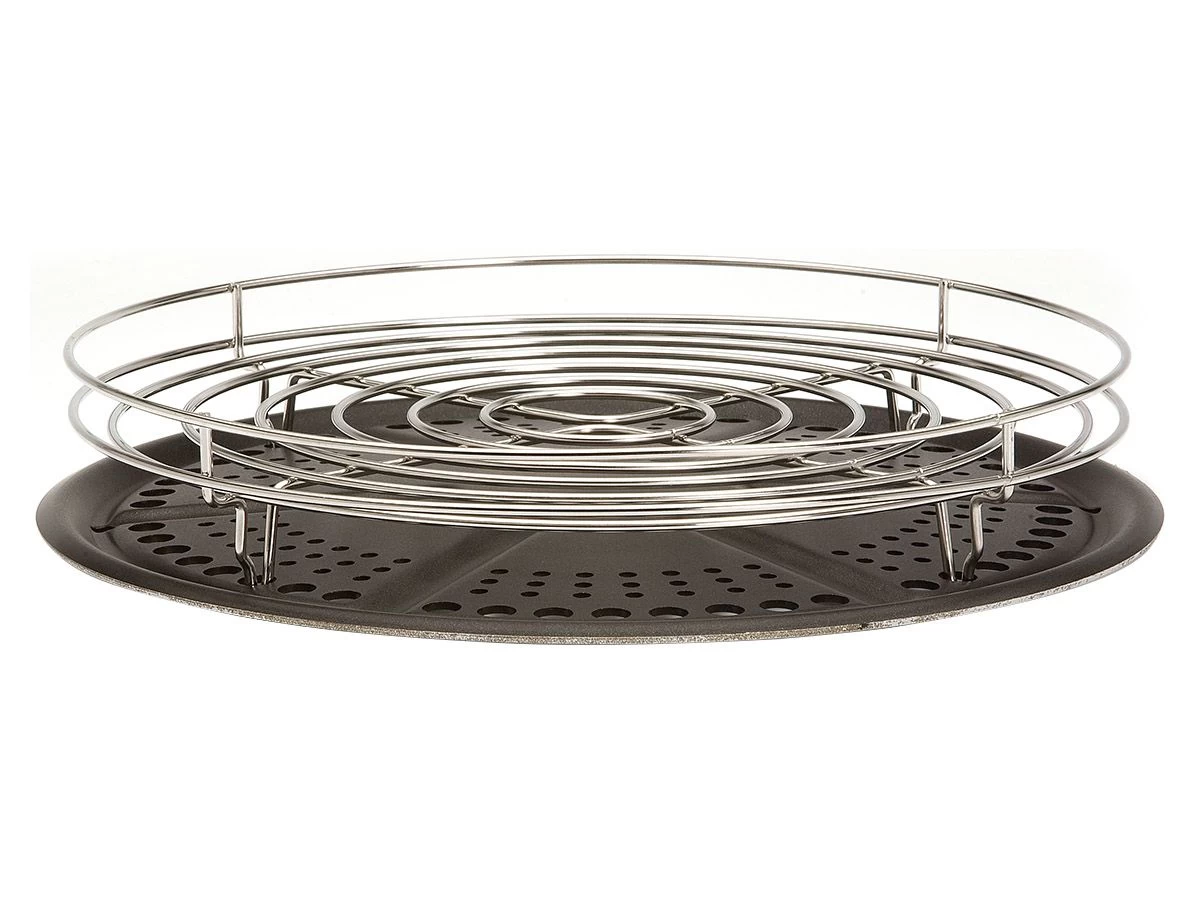 Het RVS rooster staat bovenop de basisplaat waardoor de warme lucht rondom het vlees, de vis of de bakvorm kan circuleren, net als een oven. Je kunt het rooster gebruiken voor het bereiden van brood, grote stukken vlees of het roken van vis.
