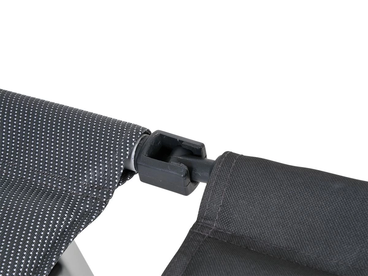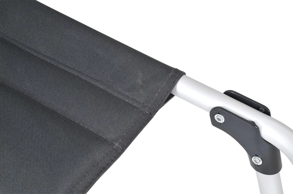 Het frame is gemaakt van aluminium met daarop een polyester bekleding dat zorgt voor optimaal comfort. De voetensteun is na gebruik plat in te klappen zodat hij eenvoudig vervoerd en bewaard kan worden.