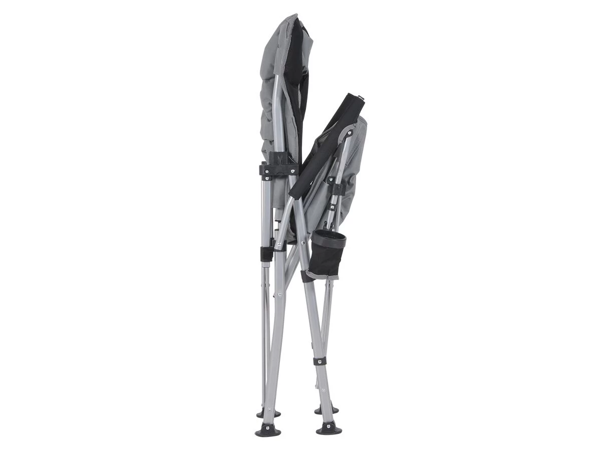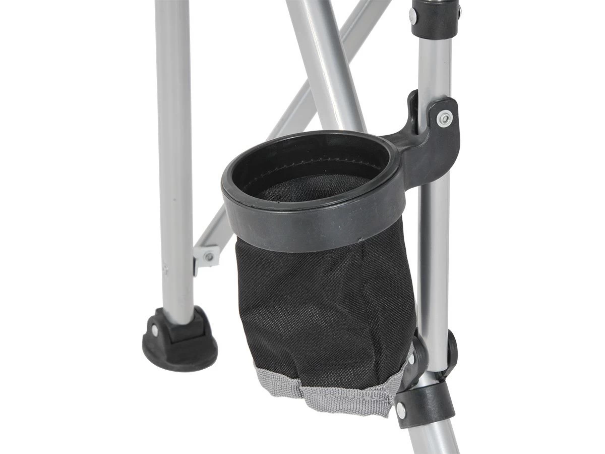 De rugleuning van de Travel staat in een hoek van ongeveer 120 graden, waardoor je altijd iets achterover ligt. En om het genieten niet te hoeven verstoren is de stoel uitgerust met een praktische bekerhouder aan de rechterkant van het frame. Zo heb je altijd je drankje binnen handbereik.