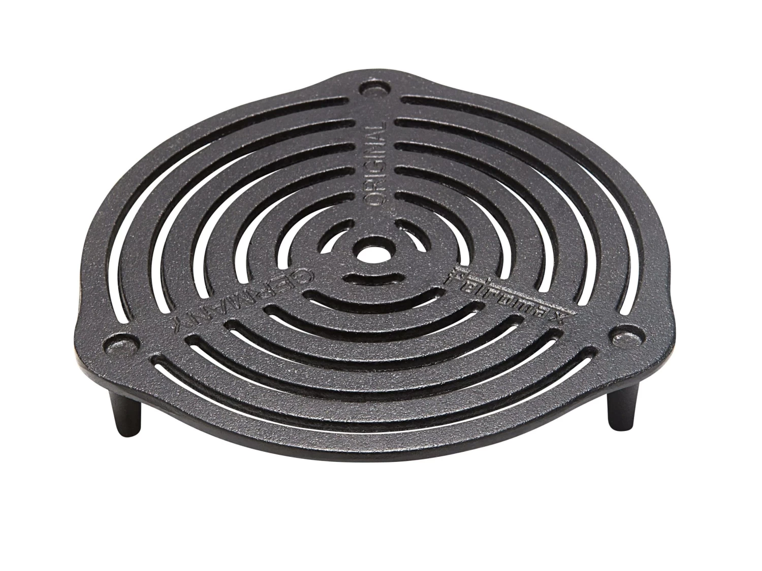Het is een onderzetter en grillrooster in 1. Door de 3 pootjes staat het rooster extra stevig in de pan. De pootjes zorgen dat het eten niet direct op de bodem ligt en daardoor is de kans op aanbranden minder.