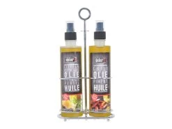 Wil jij de olie in de pan beter kunnen doseren? Olie over een salade, brood of pasta heen sprayen? Of bijvoorbeeld het bakblik invetten? Met deze sprayflacons is dat heel eenvoudig! En dankzij de handige houder blijven de sprays bij elkaar en plaats je hem gemakkelijk vanuit de keuken naar de tafel of naar de barbecue buiten!